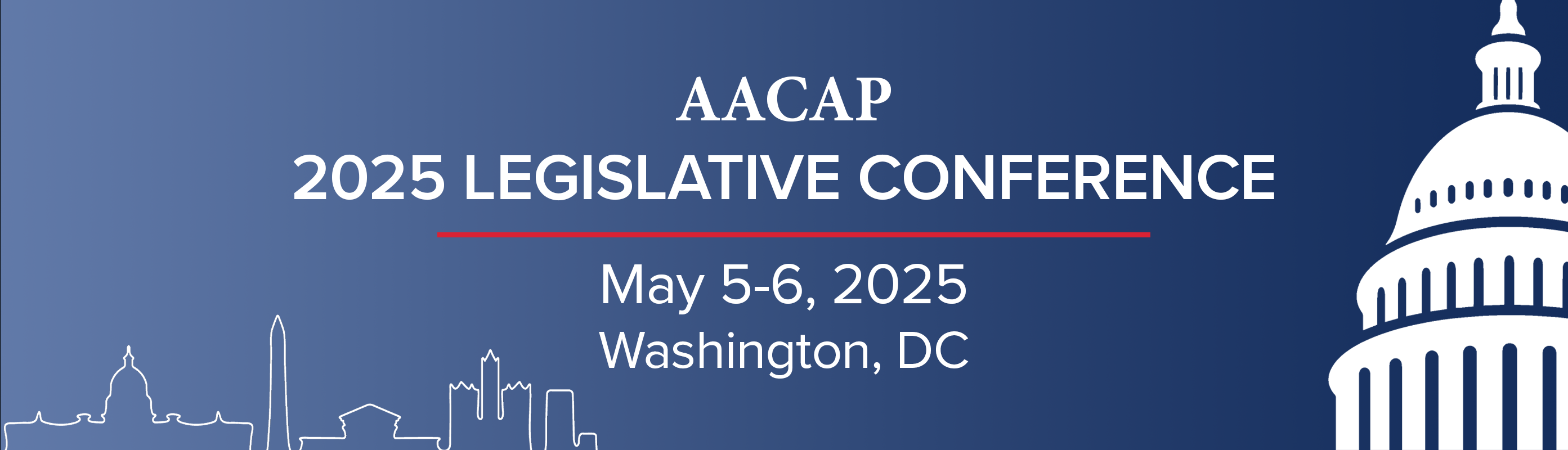 The 2025 AACAP Legislative Conference will be held May 5-6, 2025 at the Hilton Washington DC National Mall The Wharf.