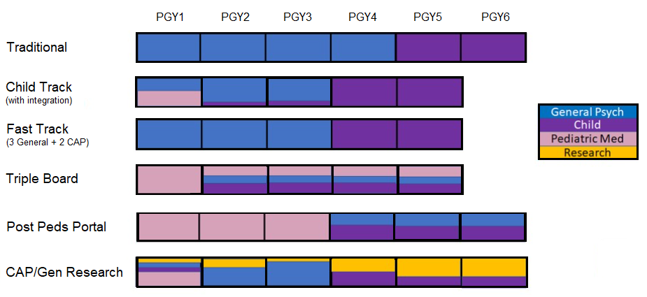 There are several different training pathways to a career in child and adolescent psychiatry, each of which offers a unique training experience based on your interests: