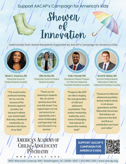 Two initiatives that depend on funding support from CFAK are AACAP’s Summer Medical Student Fellowship and AACAP’s Pilot Research Awards.